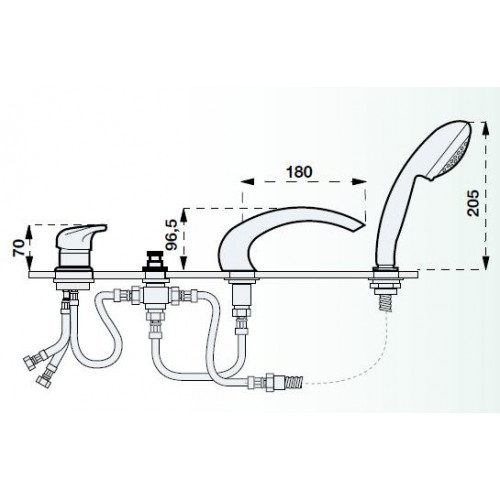 Baterie pentru cada si dus, model Cigno - Artis Italy Se monteaza pe cada Finisaj : crom lucios Contine : - corp monocomanda cu maneta de actionare apa cada/rece - racorduri pentru apa - diverter pentru dus - pipa pentru umplerea cazii cu apa - set de dus cu suport, furtun si dispersor - set montaj inclus Opinii (0)