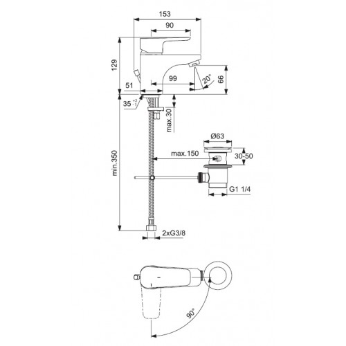 Baterie de lavoar BlueStart-Ceraplan III cu ventil - Ideal Standard Finisaj: crom lucios Mod de fixare: Easy-fix Contine: - cartus monocomanda 40 mm tip IS CLICK - sistem de limitare a temperaturii apei - maner metalic cu indicator apa calda/ apa rece - aerator tip Cascade M24x1 - ventil metalic - racorduri flexibile G3/8 pentru alimentare cu apa Opinii (0)