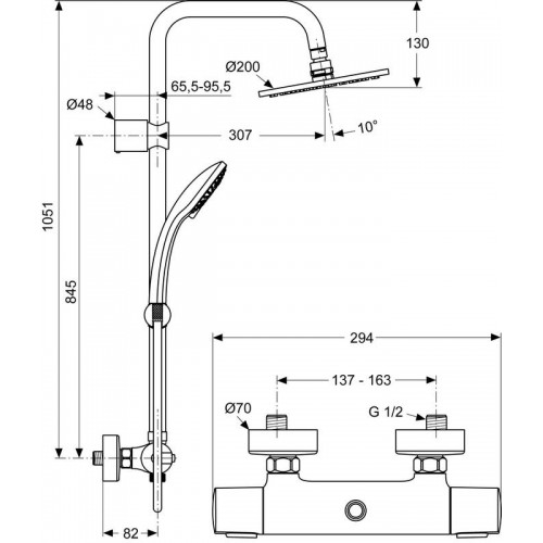 Coloana de dus model Ideal Duo Contine : - baterie de dus cu termostat - dus fix Ø 200mm - dus mobil Ø 100mm 3 functii - furtun de dus 1750mm - teava coloana din alama cromata Ø 25mm Opinii (0)