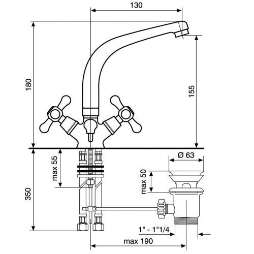Baterie pentru lavoar inalta model Decò Classic Montaj: Pe lavoar / chiuveta Material: Alama Finisaj: Bronz antichizat Contine: