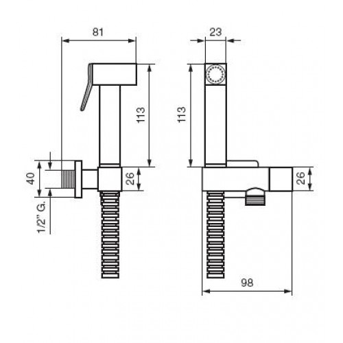 Set dus igienic model : 133 - Emmevi Finisaj : crom lucios Material : alama cromata Contine : - baterie monocomanda pentru apa rece sau premixata - suport dus - dus cu levier de actionare - furtun dus 120cm Dimensiuni : vezi schita Opinii (0)
