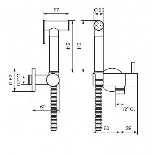 Set dus igienic model : 147 - Emmevi Finisaj : crom lucios Material : alama cromata Contine : - baterie monocomanda pentru apa rece sau premixata - suport dus - dus cu levier de actionare - furtun dus 120cm Dimensiuni : vezi schita Opinii (0)