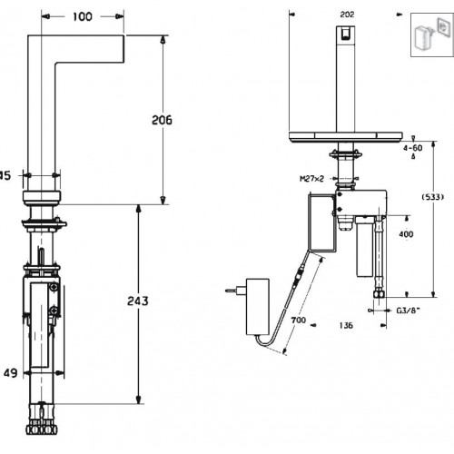 Baterie lavoar model Canyon ; H - 206mm Finisaj : crom lucios Contine : - corp baterie Canyon - sistem electronic de amestec a apei calde/rece - avertizare prin iluminare cu LED rosu/albastru pentru amestec apa calda/rece - set racorduri cu garnitura de etansare - transformator electric - set montaj inclus