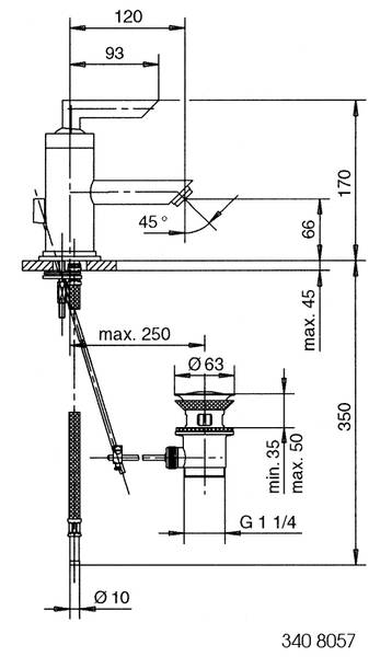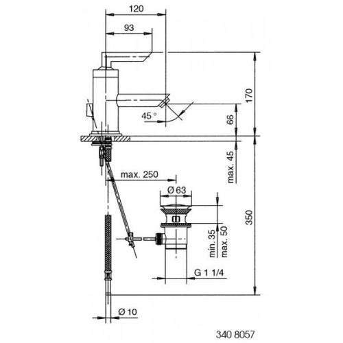 Baterie lavoar monocomanda Sam Eileen, 1/2" contine cartus ceramic reglabil, perlator, kit ventil 1 1/4", cu racorduri flexibile Finisaj: crom