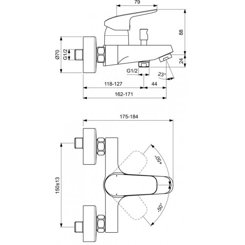 Baterie de cada si dus Ceraflex pe perete - Ideal Standard Finisaj: crom lucios Contine: - cartus monocomanda 38 mm tip IS CLICK - sistem de limitare a temperaturii apei - maner metalic cu indicator apa calda/ apa rece - aerator tip Cascade - divertor automat - ornament plastic cromat Opinii (0)