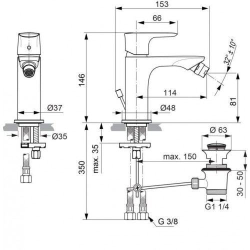 Baterie de bideu, model Connect Air - Ideal Standard Finisaj: crom lucios. Mod de fixare: Easy-fix, cu inel de centrare si strangere. Contine: - cartus ceramic monocomanda 25mm IS - fara limitator apa calda, fara Click - maner metalic cu indicatii apa calda/ apa rece - aerator cu articulatie sferica, M24x1 cu limitator debit 5 l/min - ventil metalic - racorduri flexibile PEX G3/8 pentru alimentare cu apa. Opinii (0)