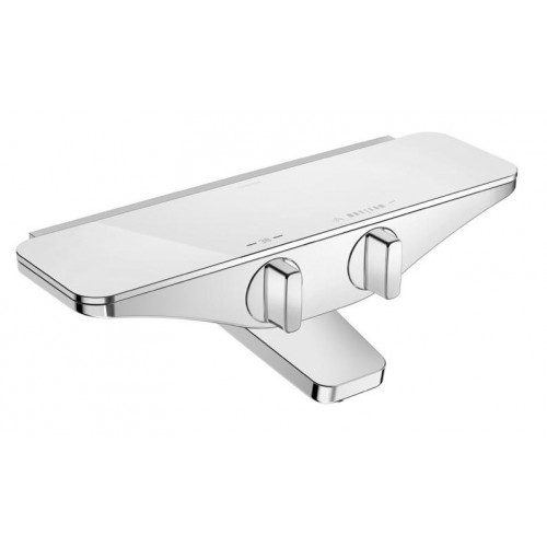 Baterie de cada/dus cu termostat model Emotion - Hansa Finisaj : crom / alb Contine : - corp baterie de dus, alama cromata - polita sticla securizata alba - proiectie pipa pentru apa 137mm - cartus termostatic pentru control temperatura - manete de comanda cu inscriptii de indicare - diverter dus 2 cai - set montaj inclus Presiune de functionare: 1-10 bar