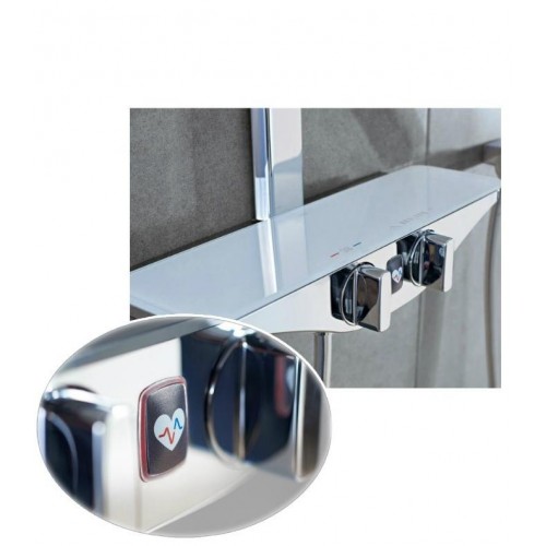 Coloana de cada dus cu termostat model Emotion Wellfit - Hansa Finisaj : crom / antracit Material: alama cromata Etajera: sticla cristal antracit translucid Sistem Wellfit inclus ( vezi descriere) - actionare sistem Wellfit : baterii 4x1,5v AA Contine: - cartus termostatic pentru control temperatura - manete de comanda cu inscriptii de indicare - proiectie pipa pentru apa 137mm - diverter 2 cai - coloana cu cap de dus, efect ploaie - dus de mana 3 functii, furtun si suport - set montaj inclus Presiune de functionare: 1-10 bar Opinii (0)
