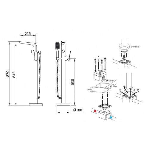 Baterie cada dus free-standing, model: Vogue Elegance - Clever - Standard Hidraulica