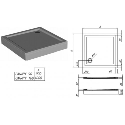 Cădiţă de duş model Canary 90 - Kolpa Material: marmură compozită Finisaj: alb lucios Dimensiuni: 900 X 900 mm / H 35mm Se recomandă: - set picioare / panouri mascare (acril) Preţ: 930lei - sifon cădiţă duş Slim Preţ: 90 lei Opinii (0)