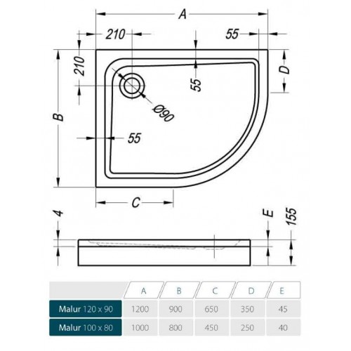 Cadita de dus asimetrica model Malur - Kolpa Amplasare : Dreapta ( R ) Dimensiuni : 120 x 90 x 4,5 (15,5)cm R550 Material : acril sanitar Finisaj : alb lucios Se recomanda : - set picioare / panou mascare Pret : 590 lei - sifon cadita dus Pret : 90 lei Opinii (0)