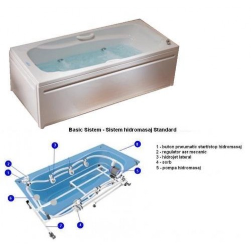 Cada Dione cu hidromasaj Basic . Dim. : 1700x800mm Material : acril sanitar (ranforsat) Contine : - Jeturi hidromasaj laterale 6 buc - Comanda on/off cu actionare pneumatica - Regulator de aer cu actionare manuala - Pompa hidromasaj 650w - Panou frontal - Sifon cada automat Opinii (0)