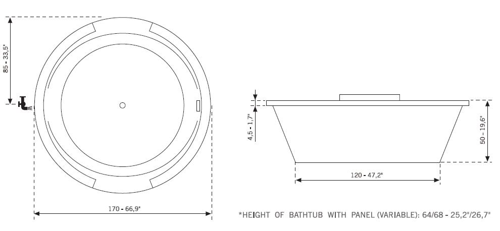 Cada acril, model: Cimbra Ø170cm - Banos10 Finisaj: alb lucios. Material: acril sanitar ranforsat Dimensiuni: Ø170*h68 cm Hidromasaj: sistem Free + Aer - Jeturi hidromasaj laterale 8 buc - Jeturi aeromasaj vertical 16 buc - Comanda pneumatica pentru hidromasaj si aeromasaj - Sistem manual Venturii (aerarea sistemului de hidromasaj) - Pompa hidromasaj 900w - Compresor aeromasaj 700w (cu aer cald ) - Cadru metalic de sustinere cada cu hidromasaj Se recomanda: Sifon automat cada Cimbra: Pret: 280 lei Masca frontala lemn pentru cada Cimbra culoare : wenge ,gri; Pret: 2750 lei Opinii (0)