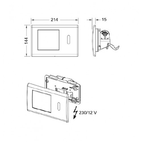 Clapeta actionare cu senzor pentru incastrat modul Rezervor WC Incastrat Dimensiuni: 214 x 144 x 15 mm Clapeta WC senzor Model: TECE planus Finisaj: alb lucios Prevede un senzor cu infrarosu si o clapeta de actionare manuala - conectare la retea 230/12V Material: otel inoxidabil Separat se vor comanda: Transformator TECEplanus 230 / 12 V, cod: 9 810 003 Cablu electric de conectare pentru unitatea de comanda electronica TECEplanus 12 V, cod: 9 810 004 Opinii (0)