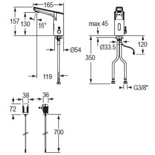 Baterie lavoar cu senzor, model Topas - Conti Maneta de amestec apa calda / rece Alimentare baterie 6V litium 2 CR5 Presiune apa : min/max 0,3 - 10 bar Debit: 6l/Min. (3 bar) Temperatura maxima: 80°C Opinii (0)