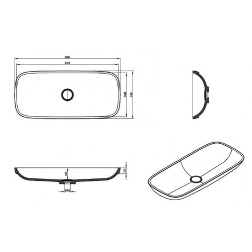 Lavoar solid surface (compozit) model Gloria - Kolpasan Amplasament: semi incastrat blat / mobila baie Finisaj: alb (kerrock 108) Dimensiuni: 880x400 h 100mm Contine: ornament solid surface alb pentru acoperire scurgere sifon