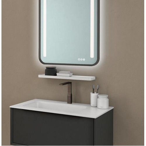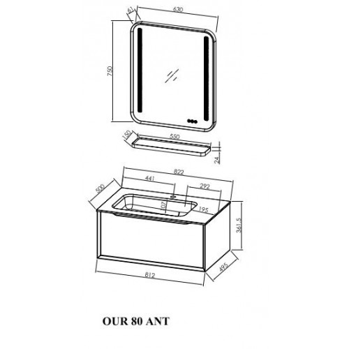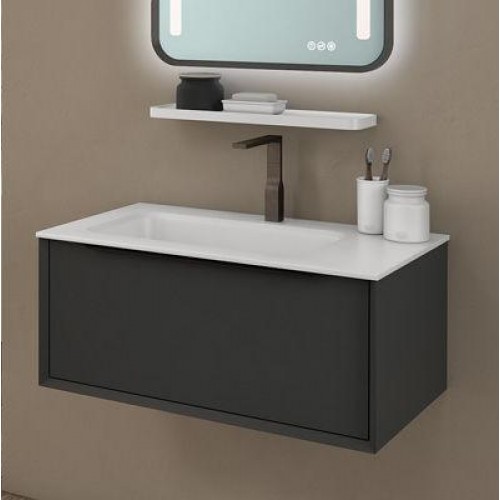 Mobilier pentru baie 80 cm, model Ramona - KolpaSan Finisaj: antracit lacuit Material: - fronturi MDF vopsit lacuit - box MDF vopsit lacuit - lavoar compozit (solid surface) - manere metalice - feronerie metal + inchidere lenta - iluminare LED; 20w Dimensiuni: - vezi schitele Contine : - baza mobilier finisaj antracit lacuit - lavoar solid surface (kerrock) - oglinda cu iluminare LED/ TUCH/ DIMMER/ CLOCK Opinii (0)