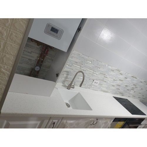 Blat de bucatarie - Solid Surface - - material: solid surface (Kerrock) Dimensiuni: - se produc in diferite dimensiuni si forme ( contactati consilier magazin on-line)- FINISA - gama larga de culori si efecte Finisaj: - blat: terrazzo - chiuveta unicolor alb - finisaj lucios ( µ 800) - SE PRODUC DUPA PROIECT ( la solicitare se poate face de catre personalul producatorului) - PRETUL variaza in functie de dimensiuni, forma, finisaj material si alte servicii oferite ! Opinii (0)