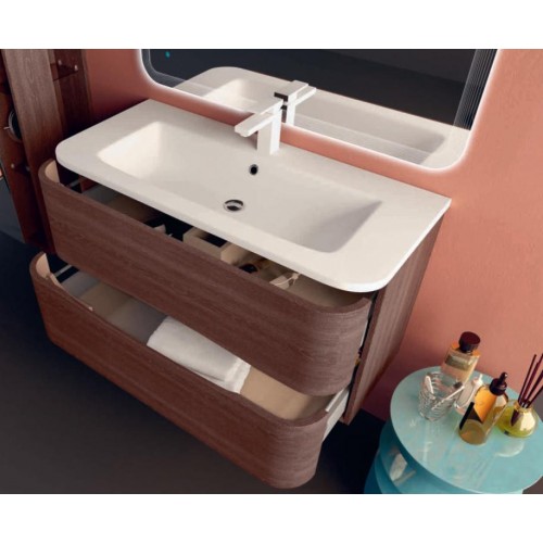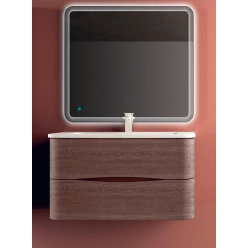 Mobilier de baie Angie 100 - Badenhaus Dimensiuni: vezi schita Contine : - baza suspendata mobilier, finisaj stejar inchis / alb lucios - lavoar incorporat in blat, compozit mineral - oglinda rectangulara cu sistem antiaburire si iluminare - iluminare perimetrala LED K6500 Produs indisponibil Opinii (0)