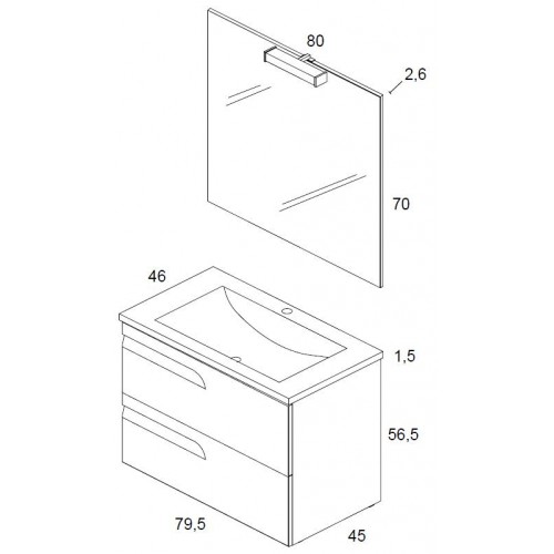 Set mobilier 80cm suspendat culoare vintage seria Vitale Contine: Baza mobilier suspendat cu doua sertare Sertare cu inchidere soft-close Lavoar ceramic 81cm Oglinda 80 x 70 cm si spot luminos Produs indisponibil Opinii (0)