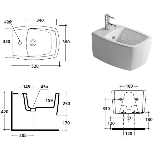 Bideu suspendat alb mat model : SA02 - Galassia Montaj: suspendat Dimensiuni: 520 X 380 X h250 mm (Lungime X Latime X Inaltime) Finisaj: alb mat Material: portelan sanitar Contine un orifciu pentru baterie Produsul are inclus kit de fixare Opinii (0)