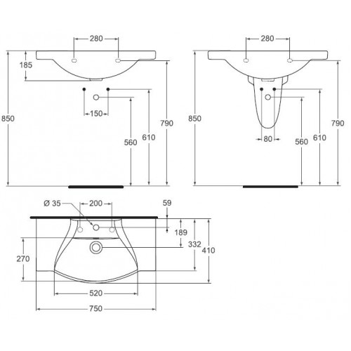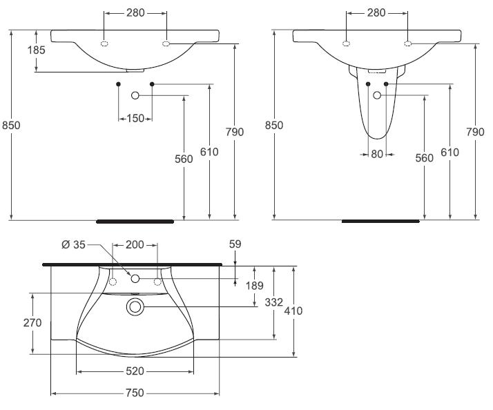 Lavoar ceramica/portelan 75cm Sirius Se monteaza suspendat pe perete/console/mobilier Pentru informatii suplimentare contactati furnizorul Opinii (0)