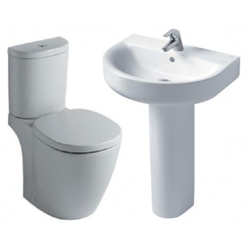 Set obiecte sanitare seria Connect Contine : - lavoar 60cm - picior lavoar - wc stativ cu rezervor , mecanism - capac wc standard Opinii (0)