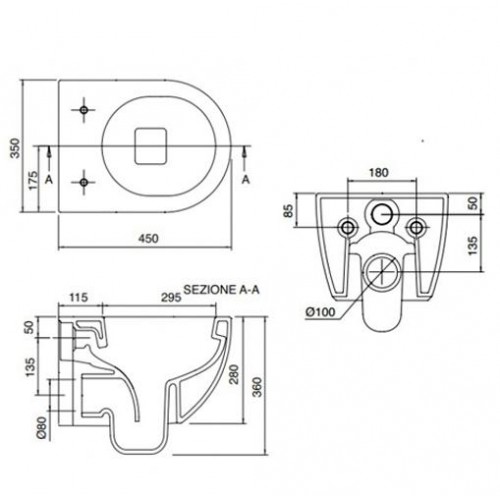 Wc suspendat model Moon - Scarabeo Dimensiuni: 450x350mm ( vezi schita ) Spalare : tehnologie Clean Flush ( fara rama ) Finisaj : alb lucios Material : portelan sanitar Tehnologie montare: nevizibila (ascunsa) Set montaj fixare rapida inclus Nu contine capac Capac Wc Moon inchidere standard art. 5526/A ; Pret: 500 lei Capac Wc Moon inchidere lenta art. 5526/B ; Pret: 690 lei Opinii (0)