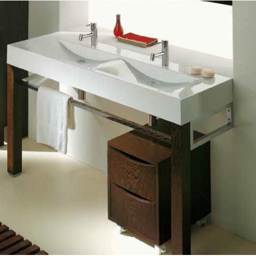 Lavoar cu suport model Plan - Sanindusa Material: portelan sanitar / MDF / metal cromat Dimensiuni: 1500x470mm Contine: - lavoar portelan 1500x470mm - set acesorii cromate - set picioare 750X70mm, MDF infoliate Wenge Opinii (0)