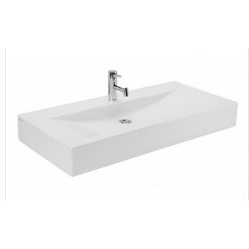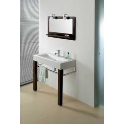 Lavoar cu suport model Plan - Sanindusa Material: portelan sanitar / MDF / metal cromat Dimensiuni: 1000x470mm Contine: - lavoar portelan 1000x470mm - set acesorii cromate - set picioare 750X70mm, MDF infoliate Wenge