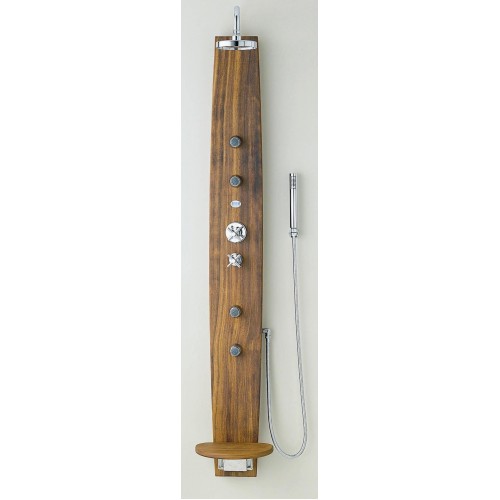 Panel dus Legno Banos10 Material: lemn - Iroko ( pretabil zona umeda ) Contine : Baterie cu termostat si selector 3 functii . - 3 duze hidromasaj -dus fix+dus mobil (furtun +dispersor) - sezut mobil ( iroko - otel inox ) Panelul se monteaza pe o susprafata plana Opinii (0)
