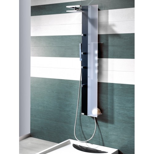 Panel dus aluminiu +metacrilat model Iris 149*26 Este format din 2 componente :colona dus culoare aluminiu /negru /alb -parte metacrilata culoare : transparent,rosu,violet,portocaliu,maro ,verde Contine :baterie cu termostat,selector diferite functii ,4 duze hidromasaj ,2 etajere ,dus fix+dus mobil (furtun +dispersor ) Opinii (0)