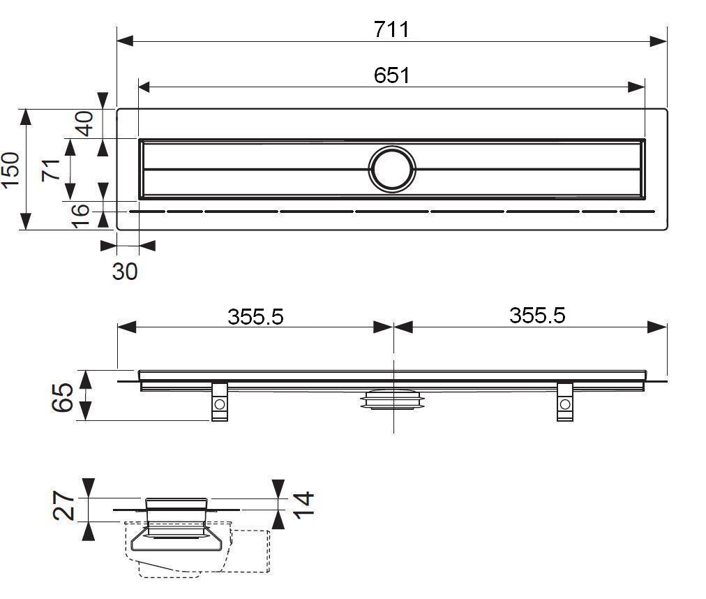 Rigola dus inox lucios Basic 70 TECEdrainline