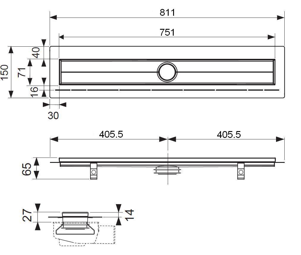 Rigola dus inox lucios Basic 70 TECEdrainline