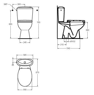 Vas wc monobloc cu scurgere verticala Seva M Contine: Vas wc monobloc cu scurgere in pardoseala . Rezervor cu alimentare apa stanga/dreapta si mecanism dual flush . Capac wc cu set de montaj Pentru informatii suplimentare contactati furnizorul